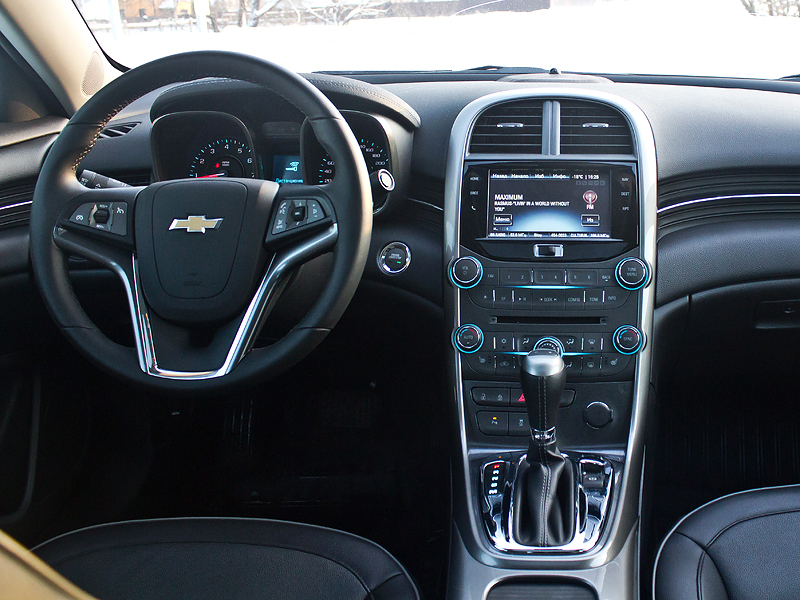 Фото Chevrolet Malibu (2012 - 2013) поколение VIII - Интерьер типично американский, с обилием "хромированных" деталей и красивой подсветкой