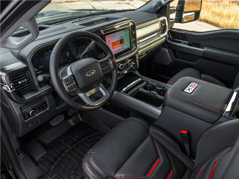 Вот и пойми этих техасцев! С одной стороны, тюнинг-ателье Hennessey в качестве базы для своего проекта в честь предстоящего 250 летнего юбилея независимости США выбрало тяжелый пикап Ford с говорящим названием F-250 Super Duty и, разумеется, в самой мощной полноприводной версии с 6,7 литровым турбодизельным V8. Патриотический настрой поддерживают накладки с надписью «USA 250» на передних крыльях исполина и плашки с изображением звездно-полосатого флага в кабине. Идея доминирования выражена весомо, грубо, зримо. Лифтованная подвеска с компонентами от компании BDS и регулируемыми амортизаторами FOX 2.5 с выносными резервуарами позволила более чем в полтора раза увеличить дорожный просвет, доведя его почти до 350 мм. 37 дюймовые вездеходные покрышки тут в тему, как и тонированная решетка радиатора, светодиодная «люстра» и надменно выпяченная трубчатая «губа» над передним силовым бампером из нержавейки. Но зачем VelociRaptor 1200 F-250 огромная «ноздря» на карбоновом капоте? Словно позабыв о своем имидже «выжимателя мощности», Hennessey ни на йоту не увеличила отдачу стокового «соляроядного». 507 «лошадей», 1200 (даже не 1250!) фунтов-сила-футов тяги — и точка! Фордовский двигатель семейства Power Stroke оказался сверхтвердым орешком или техасцы нет-нет да и вспоминают, что в войне Севера и Юга они были на проигравшей стороне конфедератов?