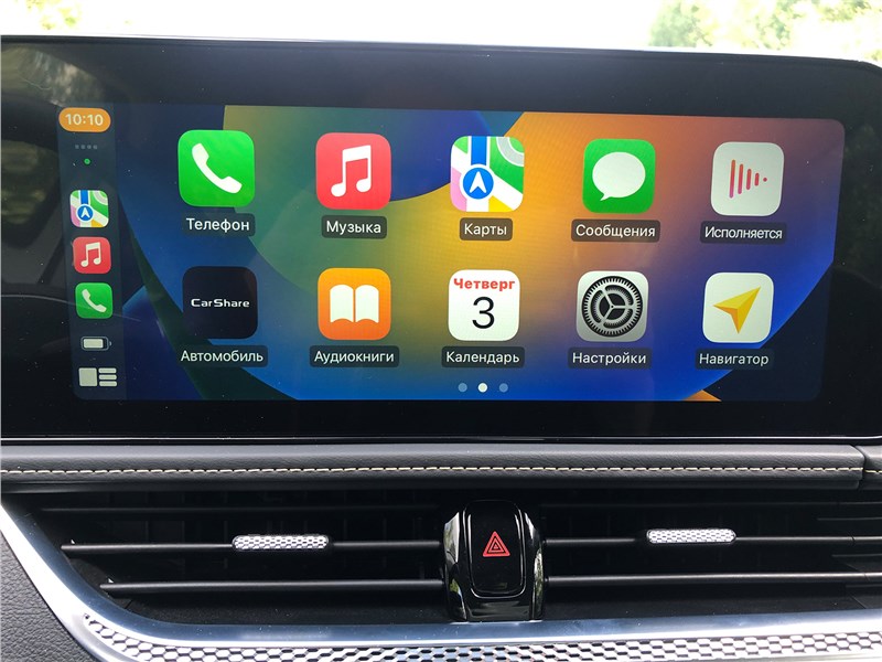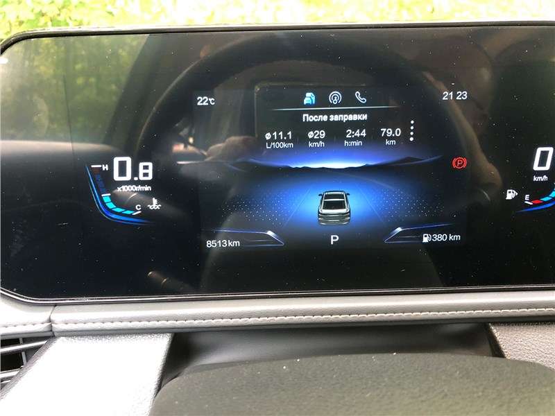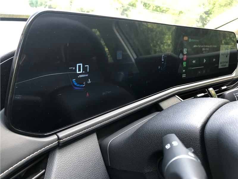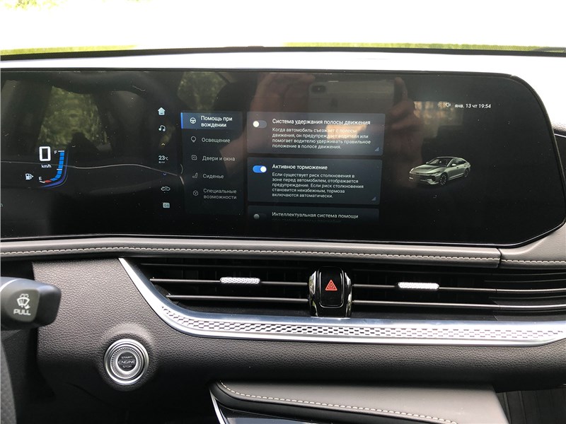 На передней панели прежние два цифровых экрана единым кластером, – 7-дюймовая панель приборов и 12,3-дюймовый дисплей мультимедиа, но теперь они русифицированы, и появилась поддержка Apple Carplay. Почему-то – в который раз встречаю в тестовых Bestune – некорректно выставленные часы и календарь: 20:22 и 11 января, хотя на самом деле 10:40 и 1 июля. Картинка у комбинации приборов единственная, а вот графика центрального экрана обновлена плюс у него расширено меню – сюда ушла, например, регулировка температуры однозонного «климата», а также управление новыми электронными ассистентами водителя.