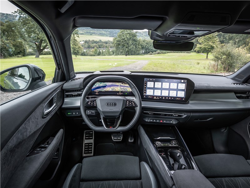 Интерьер — это то место, где Audi продолжает доказывать свое лидерство в сегменте, демонстрируя аккуратную отделку и материалы премиум-класса. В салоне доминируют два больших экрана: 11,9 дюймовая панель приборов и 12,8 дюймовый дисплей медиацентра с Apple CarPlay и Android Auto. «Физические» элементы управления климат-контролем были бы предпочтительнее, но пользовательский интерфейс виртуальной панели понятен и отличается быстрыми реакциями. Похоже, система была заметно улучшена с момента ее внедрения на Audi Q6 e-tron.
