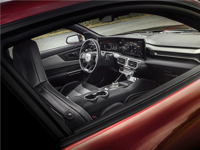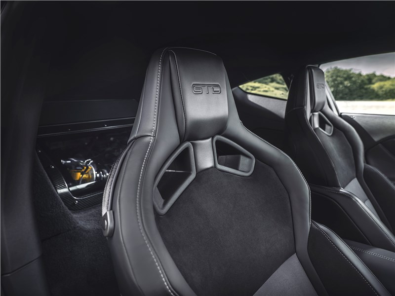 В салоне отличий от обычного Mustang не так много, как можно было бы ожидать, учитывая цену GTD в 315 000 фунтов стерлингов. Иная отделка, дополнительные кнопки на руле и титановые подрулевые переключатели передач, сделанные из списанных истребителей F-22, — вот и все новшества. Задних сидений нет, а спереди установлены кресла Recaro — довольно широкие и без особой поддержки. Да, эти кресла далеки от карбоновых «ковшей» конкурента, но трудно отрицать, насколько они удобны в повседневном использовании.