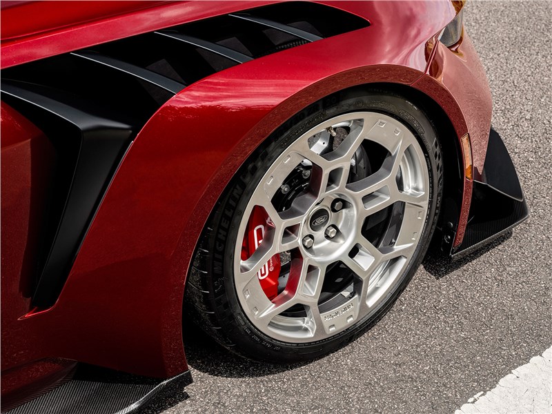 Электронный дифференциал LSD на задней оси, как и шины Michelin Pilot Sport Cup 2 R размерности 325/30R20, разработанные специально для GTD, помогают лучше переваривать высокий крутящий момент. В Michelin говорят, что эти шины — самые большие из когда-либо устанавливавшихся на переднюю ось спортивного автомобиля. Когда руководство Ford обратилось к французской компании, разговор шел не по обычному сценарию, а по принципу: «Вот что мы хотим создать. Насколько большой должна быть шина?»