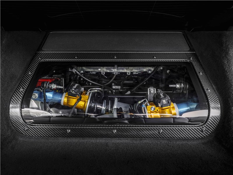 5,2 литровый V8 развивает мощность 815 л.с., его крутящий момент достигает 664 Нм. Ford отказывается назвать время разгона до сотни, но, по нашим оценкам, оно составляет 3,5 с. Максимальная скорость, как заявлено, 322 км/ч. Mustang GTD весит 1989 кг — на полтонны больше, чем Porsche 911 GT3 RS. Из-за этого, несмотря на более мощный мотор, по соотношению массы к мощности Ford выигрывает лишь около 60 л.с.