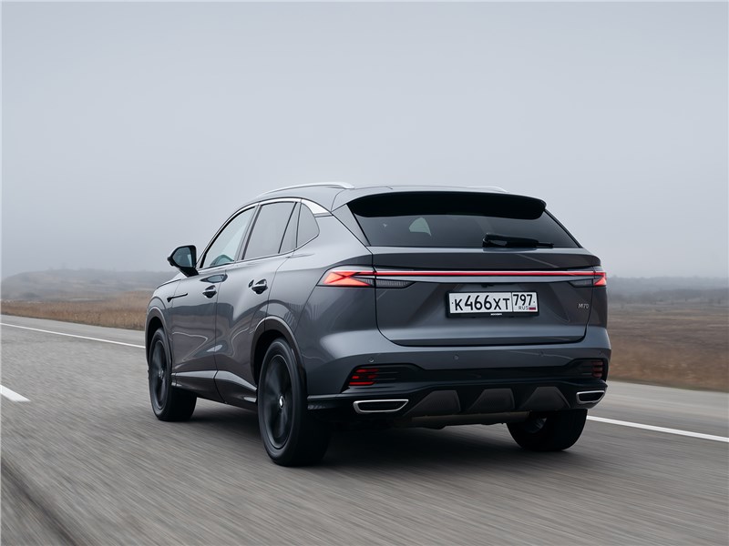 Пока на наш Ресурсный тест попала «младшая» модификация «семидисятки», которая оснащена полуторалитровым мотором мощностью 150 л.с. и 7 ступенчатым преселективным роботом (7DCT). Напомним, что верхняя модификация М70 получила более мощный двигатель с рабочим объемом 2 л и 200 л.с. Но пассивно-диванной «младшую» версию назвать нельзя. Разгон у автомобиля динамичный, при кик-дауне коробка быстро и без рывков перетасовывает передачи вниз, обеспечивая плавное уверенное ускорение. Руль достаточно информативен, если только не переключиться в режим «Комфорт», — тут обратная связь ощутимо слабеет.