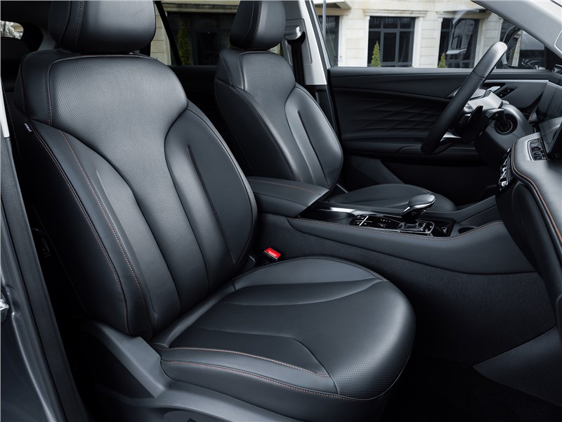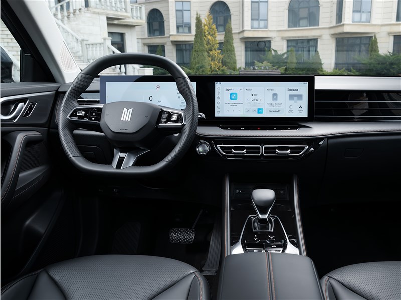 «Масс-премиум» — так называют свой новый рыночный сегмент представители столичного автозавода. И основания приподняться над середнячками у новой модели имеются. Внутри водителя ждет породистый, отделанный качественными материалами салон. Передние сиденья имеют анатомический профиль и электрические регулировки, сидеть тут удобно даже рослому водителю. Ощущение добротности внутри создает мягкий, приятный на ощупь пластик, перфорированная кожаная обшивка кресел, наличие удобных «физических» кнопок и переключателей, которые часто незаслуженно забываются в соответствии с современным цифровым трендом в автомобилестроении. Впрочем, основательно без излишнего китча в автомобиле реализован и цифровой формат управления. Кластер из двух 12,3 дюймовых дисплеев в свете быстро меняющейся моды может кому-то показаться ретроградным, однако крупные виртуальные кнопки управления «климатом» на дисплее и доступа к основному меню — это удобно.