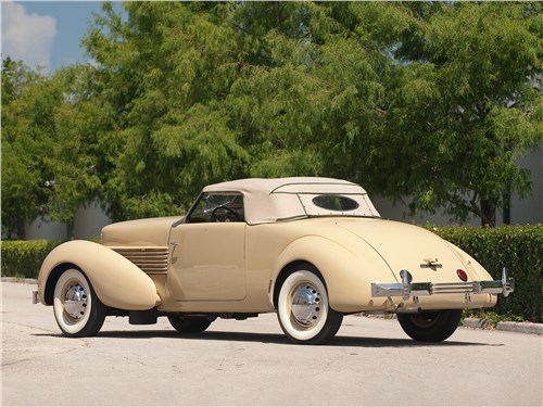 Впрочем, не черный юмор в конечном итоге похоронил не только «восемьсот десятый», но и всю марку Cord. Три года после снятия с производства L-29 она пребывала в летаргии, возможно, потому, что E.L., получившему информацию о подготовке бандитами похищения, пришлось на время укрыться в Англии. Намереваясь сделать свой камбек в Штаты максимально громким, предприниматель летом 1935 го потребовал к осеннему автошоу в Нью-Йорке подготовить новую модель Cord, причем не в виде прототипа, а как серийный образец! Для получения такого статуса требовалось выпустить партию из ста машин. Безумие? Как ни странно, замысел E.L. удалось реализовать. Почти. При разработке дизайна Гордон Бьюриг использовал проект, подготовленный еще для участия в конкурсе 1933 года. С новым двигателем дела обстояли вроде бы неплохо, но камнем преткновения стала доводка инновационной коробки передач. Так что Ильф и Петров вместе с другими посетителями Нью-Йоркского автосалона увидели на стенде еще неходовые образцы. Что не помешало получить тысячи заказов на модель, произведшую фурор. Намечалось начать поставки к Рождеству 1935 года, но к назначенному сроку E.L. вынужден был ограничиться отправкой оплатившим заказ уменьшенных копий «810 го».