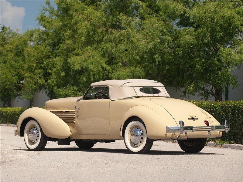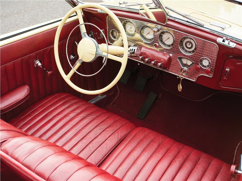 4,7 литровый 125 сильный V8 производства компании Lycoming, также входившей в холдинг Корда, демонстрировал такие передовые решения, как выполненные из алюминия поршни и головка блока цилиндров. Размещенный на рулевой колонке «джойстик» 4 ступенчатой полуавтоматической (!) «коробки» с электромагнитным приводом переключения вообще смотрится пришельцем из нашего времени. И это в середине 1930 х, когда даже гидропривод барабанных тормозов «810 го», как и радио в базовой комплектации или многорежимные дворники, уже вызывали восторг.